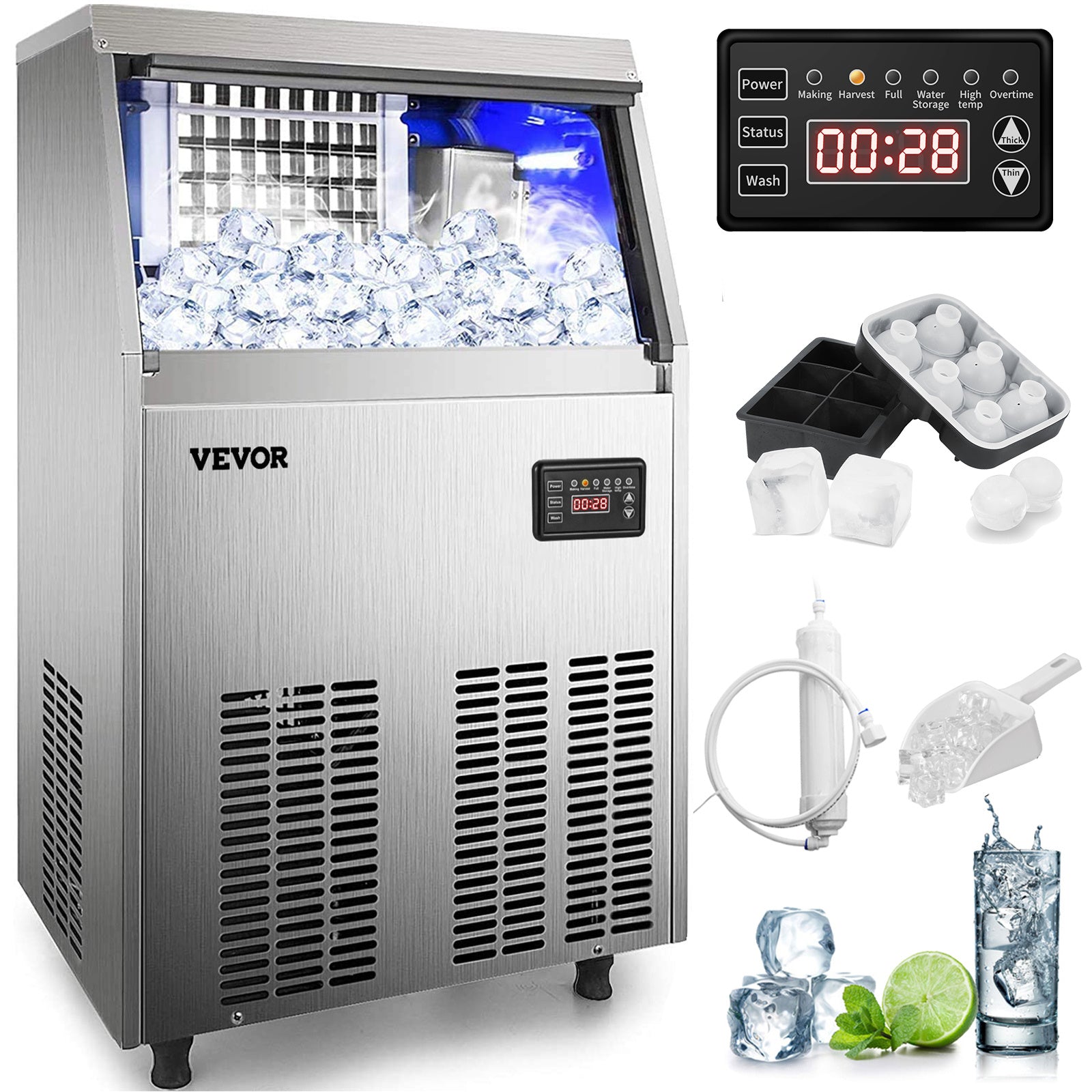Upgrade your business or home with the 110V Commercial Ice Maker, delivering a powerful 80 lbs of ice production per day with a 24 lbs storage capacity. Designed for efficiency, this stainless steel ice machine produces 40 ice cubes per plate, ensuring a steady supply of fresh ice for bars, restaurants, supermarkets, and home use. Its automatic cleaning function simplifies maintenance, providing hygienic and crystal-clear ice with minimal effort.